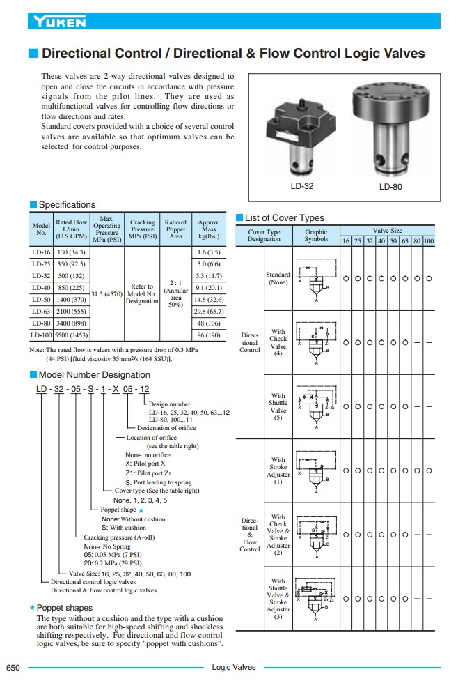 Van điều khiển dòng tỷ lệ LD-16/25/32/40/50/63/80/100-Yuken
