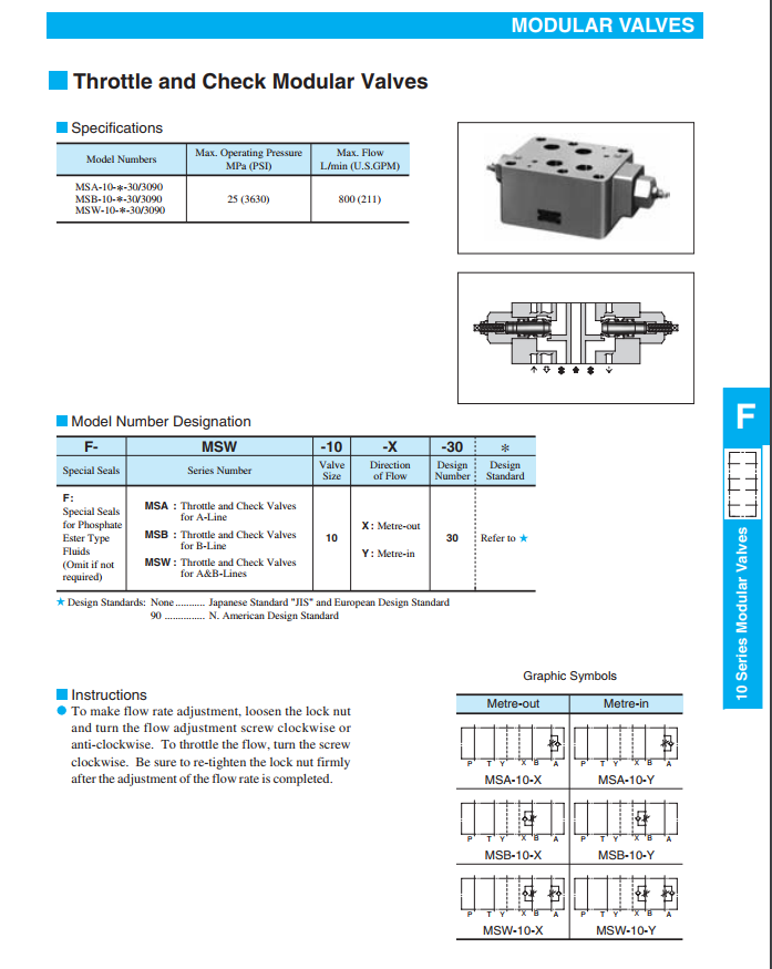 Modular van 1 chiều tiết lưu MSA/MSB/MSW-10-Yuken