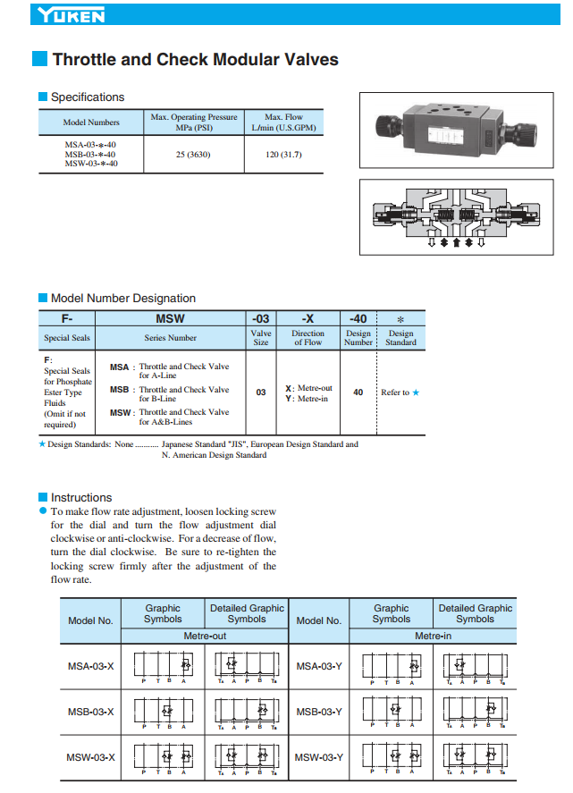Modular 1 chiều tiết lưu MSA/MSB/MSW-03 -Yuken