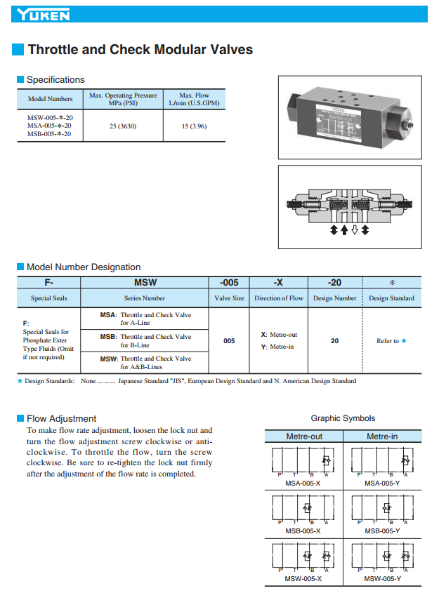 Van 1 chiều tiết lưu MSA/MSB/MSW-005- Yuken