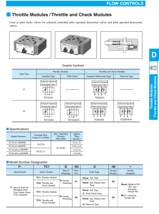 Van 1 chiều tiết lưu modular TC1G/TC2G-01/03-Yuken