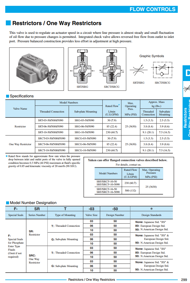 Van 1 chiều tiết lưu SRT/SRCT-03/06/10-Yuken