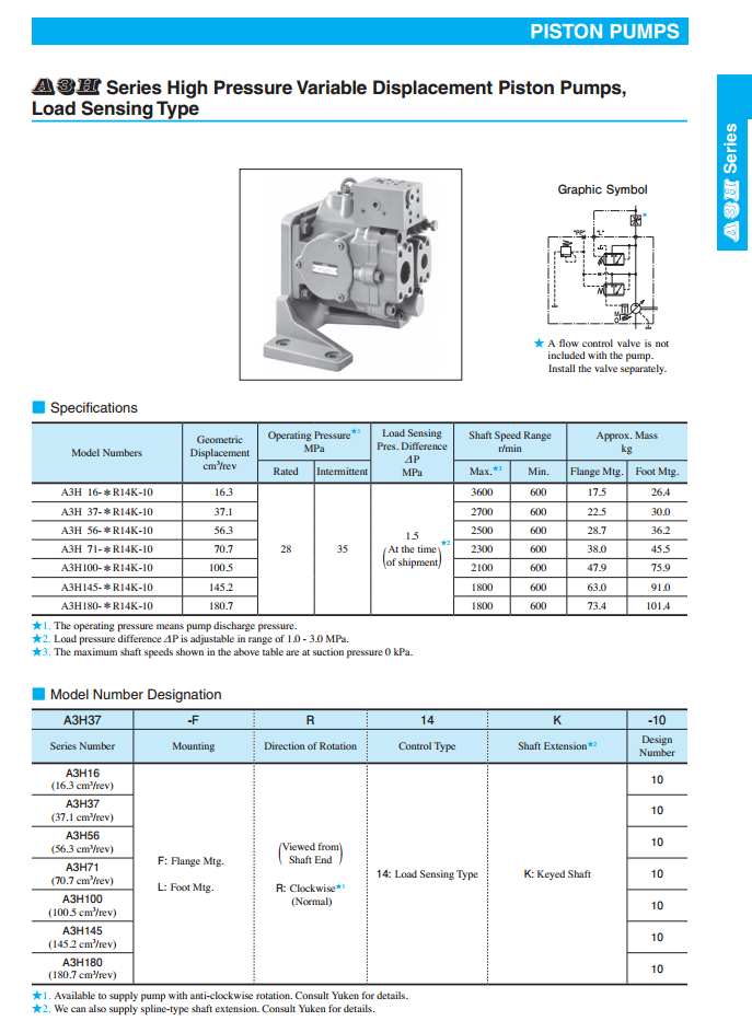 Bơm piston tỷ lệ A145~A16 -Yuken