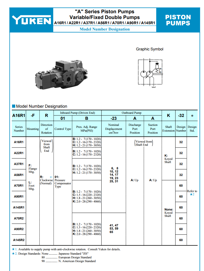 Bơm piston tỷ lệ A145~A16 -Yuken