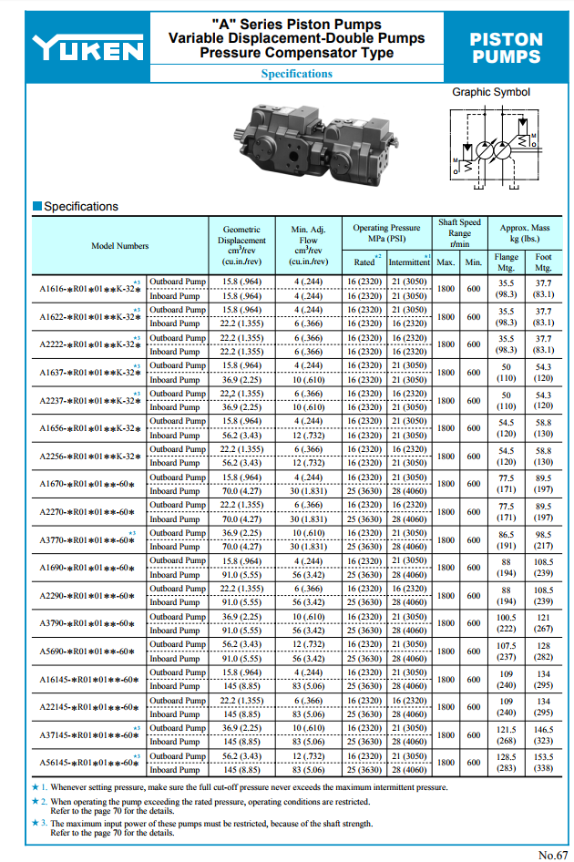 Bơm piston tỷ lệ A145~A16 -Yuken