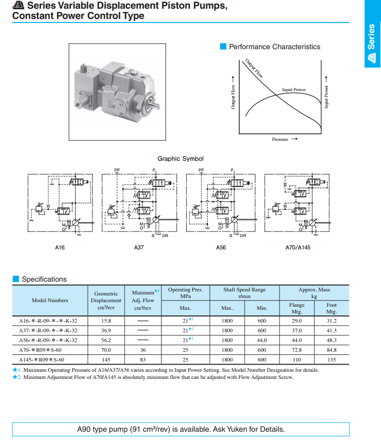 Bơm piston tỷ lệ A145~A16 -Yuken