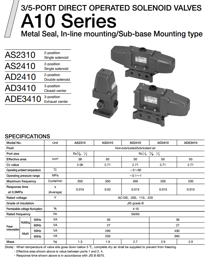 - Van điện từ series AD3410 – Thông số kỹ thuật: