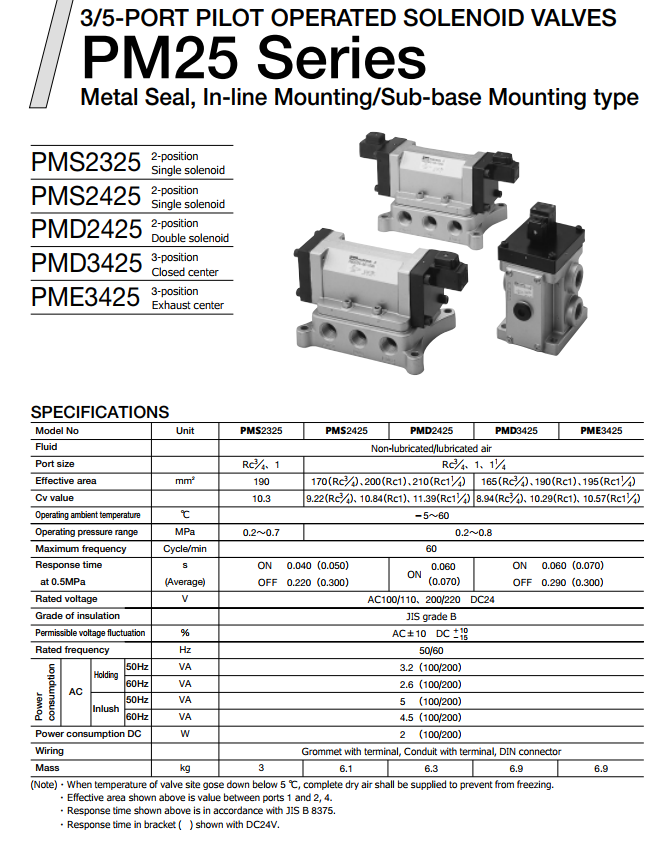 - Van điện từ series PM25- Thông số kỹ thuật: