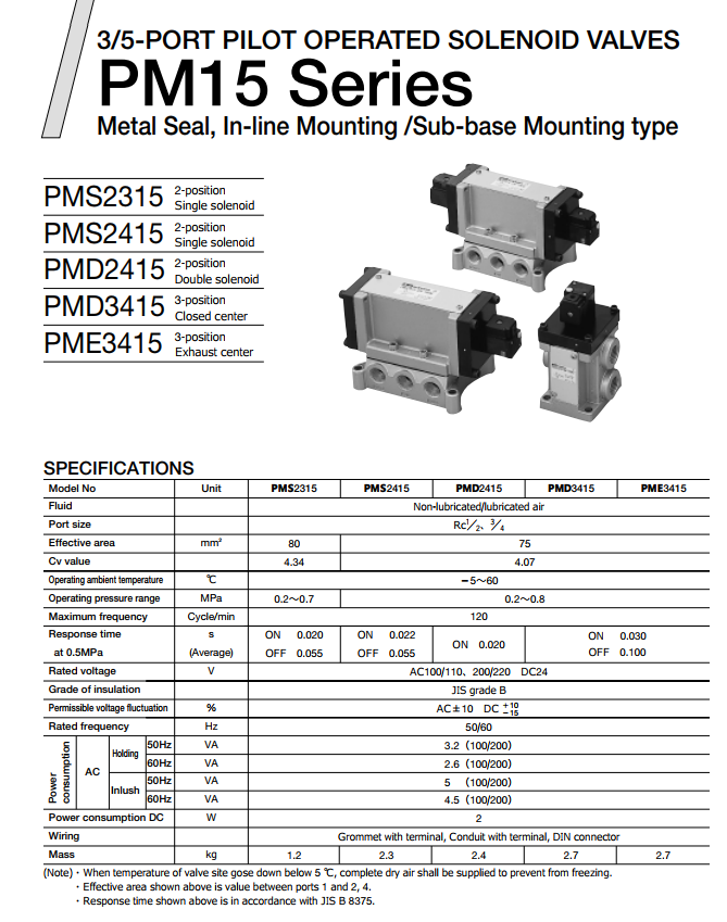 - Van điện từ series PM15 – Thông số kỹ thuật: