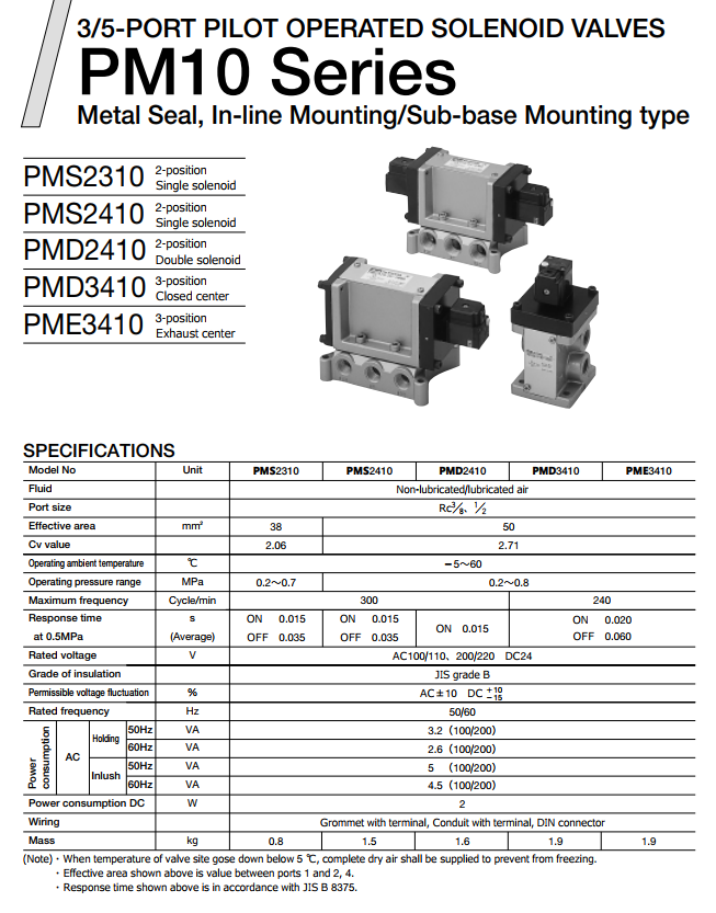 - Van điện từ series PM10- Thông số kỹ thuật: