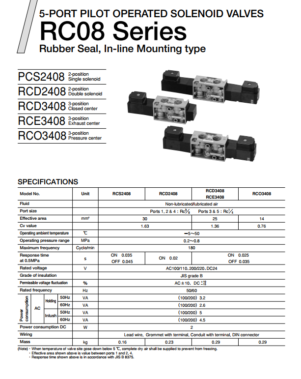 - Van điện từ series RC/PC08- Thông số kỹ thuật: