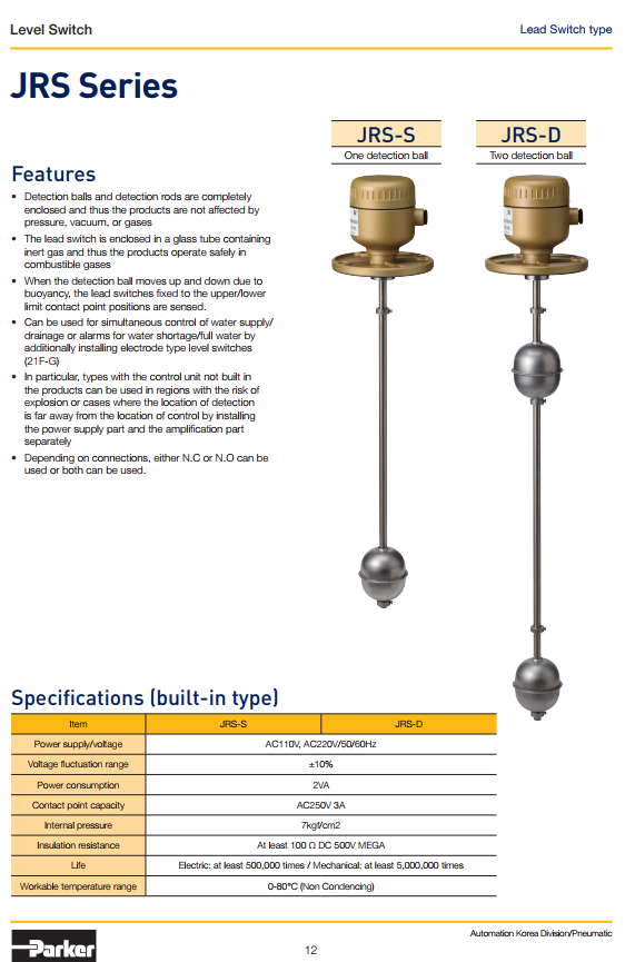 Công ty Thiết Bị Tự Động Hóa Cao Đạt xin gửi tới quý khách hàng sản phẩm Báo mức J RS -S thương hiệu Parker.