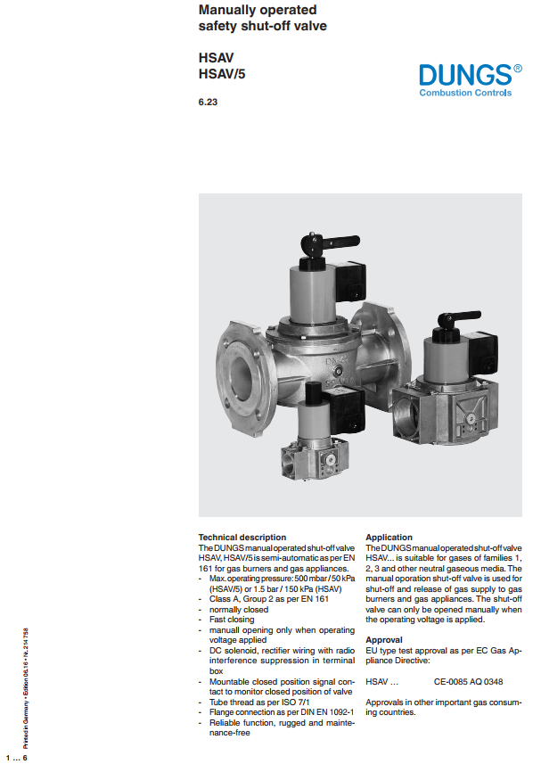 Công ty thiết bị Tự Động Hóa Cao Đạt xin giới thiệu tới quý khách hàng sản phẩm van gạt tay HSAV, HSAV / 5 thương hiệu Dungs - Germany.