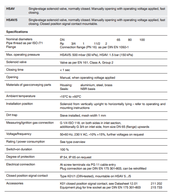 - Van HSAV, HSAV / 5 là dòng van vừa sử dụng coil điện vừa sử dụng tay gạt để đóng mở nhanh, van HSAV , HSAV /5 kiểu đóng mở 1 cấp và trạng thái thường đóng ( NC) size nhỏ nối ren và size lớn nối bích,Pmax HSAV /5 500m bar, Pmax HSAV 15 bar. Thân vỏ hợp kim nhôm, màng NBR, nhiệt độ - 150C đến + 600C.
