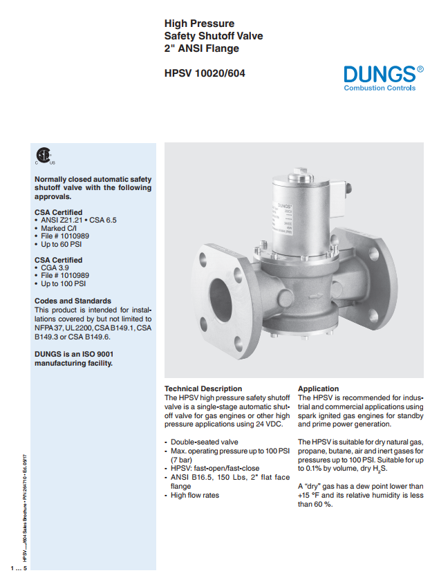 Công ty thiết bị Tự Động Hóa Cao Đạt xin giới thiệu tới quý khách hàng sản phẩm van điện từ cho gas model HPSV 10020/ 604 hiệu Dungs - Germany.