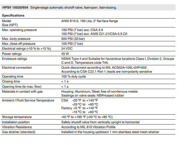 - Van điện từ HPSV 10020/ 604 - Thông số kỹ thuật: