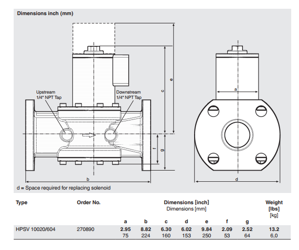 - Van điện từ HPSV 10020/ 604 là dòng sản phẩm áp lực cao thiết kế 1 coil điện, kiểu thường đóng ( NC) kết nối bích tiêu chuẩn HNSI - B16.5, Class 150 LBS. Áp lực max mở và đóng là 7 bar thân hợp kim nhôm, màng NBR, nhiệt độ - 290C đến + 600C.