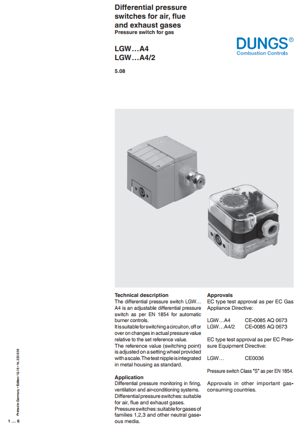 Công tắc áp suất gas LGW...A4 , LGW...A4/2-DUNGS