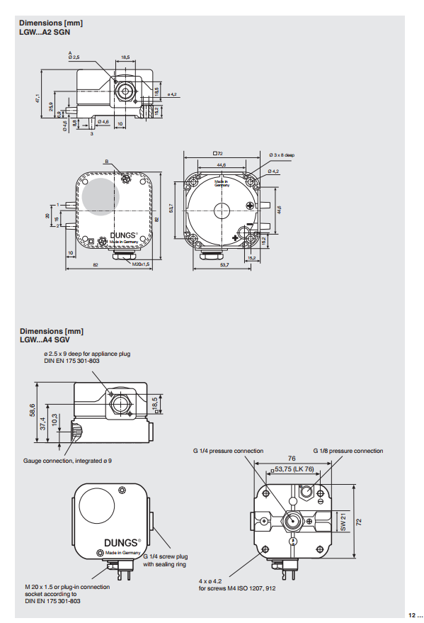 Công ty thiết bị Tự Động Hóa Cao Đạt xin giới thiệu tới quý khách hàng sản phẩm công tắc áp suất LGW …A2 SGN và LGW…A4 SGN hiệu Dungs Germany.