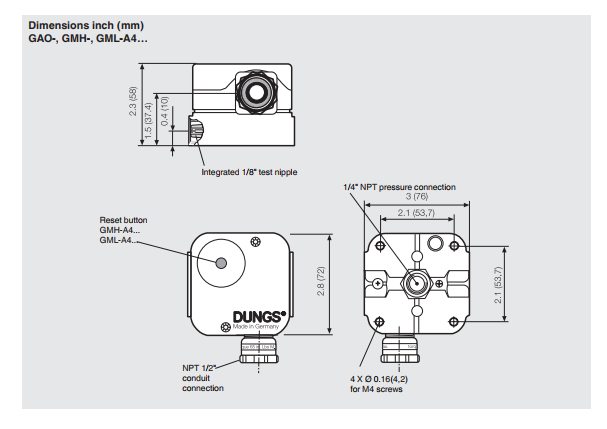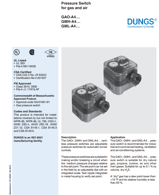 Công tắc áp suất gas & khí GAO-A4 , GMH-A4 , GML-A4-DUNGS