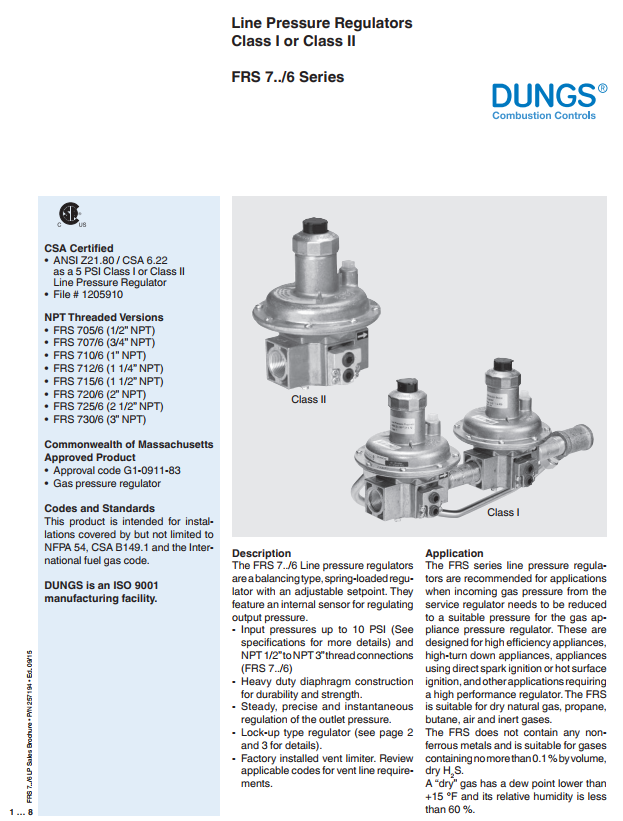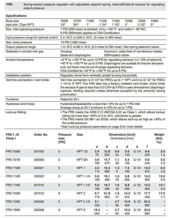 - Van điều áp gas FRS là dòng van thiết kế Class I và Class II thân hợp kim nhôm, kết nối ren NPT, size van từ 1/2’’ đến 3’’, áp lực max 500mbar ( 50 Kpa) van dễ dàng lắp đặt thay thế , họat động chính xác, hiệu quả cao.