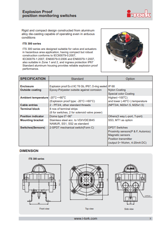 Công ty Tự Động Hóa Cao Đạt xin giới thiệu tới quý khách hàng sản phẩm “ Công tắc giám sát đóng mở van “ Model ITS hiệu i- Tork Controls ( Korea )