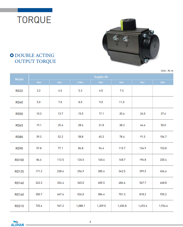 - Cơ cấu và hoạt động của bộ khí nén điều khiển van. Bộ khí nén được lắp đặt trực tiếp trên van bi hoặc van bướm. Bộ khí nén hoạt động nhờ dùng nguồn khí nén được cấp vào áp lực từ 3 bar ~ 8 bar. Dưới áp lực của khí nén, bộ khí điều khiển tạo ra áp lực moment xoắn là ( Nm) lực tác động trực tiếp lên trục của van làm xoay trục của van góc 0o ~ 90o, van mở ra và ngược lại ở chiều đóng 90o ~ 0o. Ưu điểm của bộ khí nén điều khiển: Lắp đặt nhanh, vị trí lắp đặt được ở nhiều tư thế, thao tác sử dụng thuận tiện, dễ dàng. Tùy từng nhu cầu sử dụng van khí nén điều khiển có thể điều chỉnh đóng mở nhanh hay chậm, độ bền sử dụng cao,chịu được môi trường khắc nghiệt.