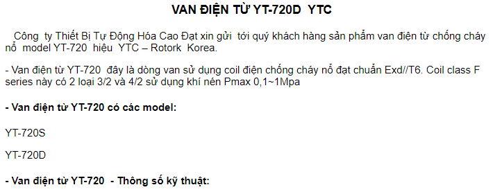 Van điện từ YT-720D-YTC