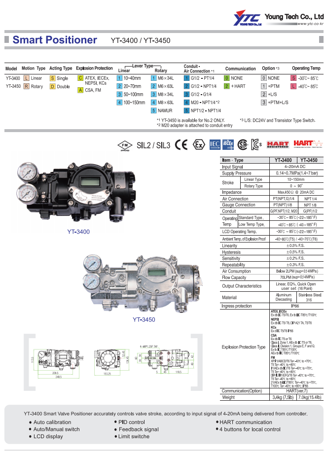 Công ty Thiết Bị Tự Động Hóa Cao Đạt xin gửi tới quý khách hàng sản phẩm bộ điều khiển tuyến tính cho van công nghiệp model YT - 3400 và YT - 3450 hiệu YTC - Youngtech Korea.