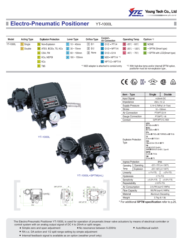 -Bộ điều khiển van tuyến tính YT 1000L - Thông số kỹ thuật: