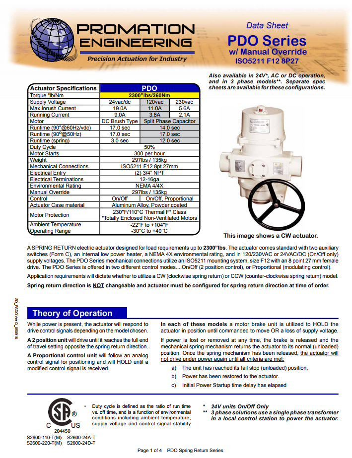 Bộ điện điều khiển van P1.B, P1.C (15Nm) Promation