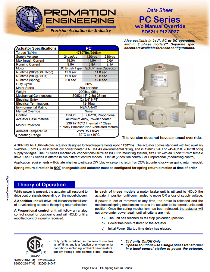 Bộ điện điều khiển van P1.B, P1.C (15Nm) Promation