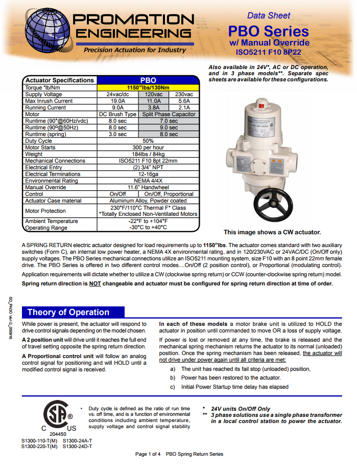 Bộ điện điều khiển van P1.B, P1.C (15Nm) Promation