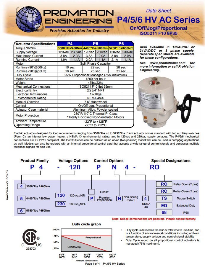 Bộ điện điều khiển van P1.B, P1.C (15Nm) Promation