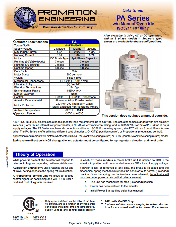 Bộ điện điều khiển van P1.B, P1.C (15Nm) Promation