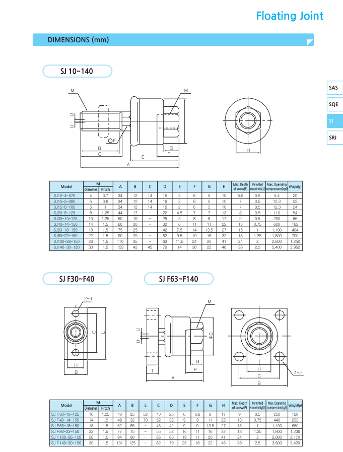 - Khớp nối SJ series này sử dụng lắp cho đầu đẩy xi lanh khí và thủy lực áp cho khí max 10 bar và cho thủy lực là 35 bar kết nối ren hoặc bích.