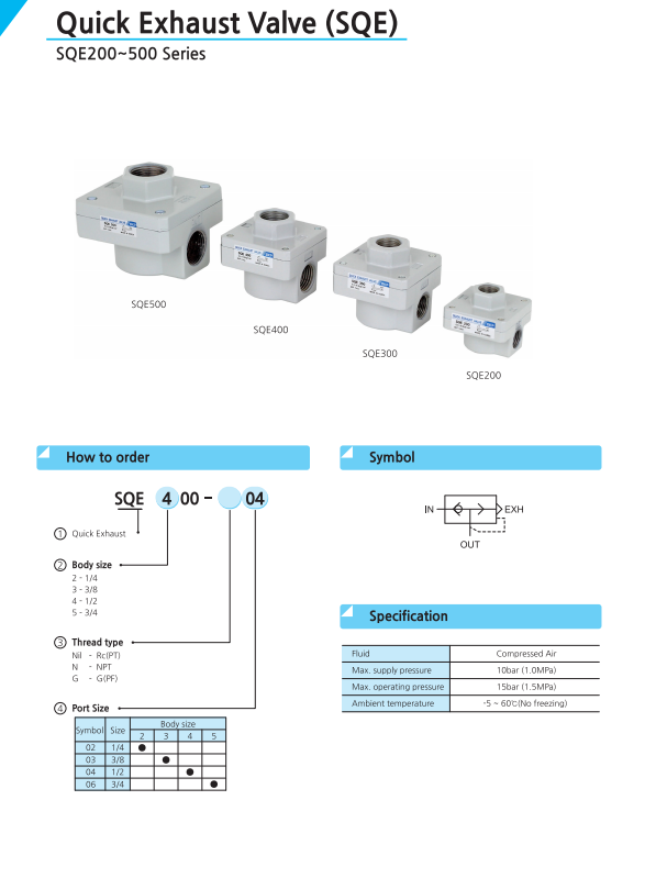- Van xả nhanh SQE series SQE là van sử dụng cho hệ thống khí nén có tác dụng rút ngắn thời gian hành trinh sử dụng khí, ứng dụng rộng rãi, dễ dàng lắp đặt, hiệu quả cao.