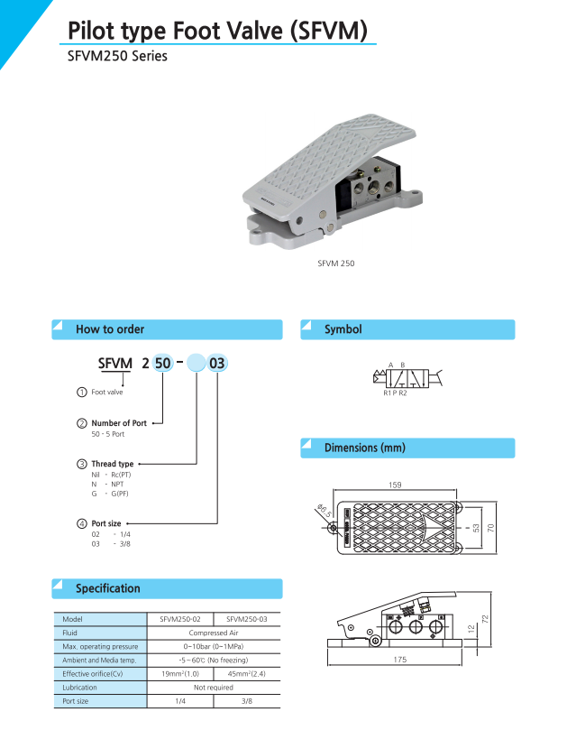 Công ty Thiết Bị Tự Động Hóa Cao Đạt xin gửi tới quý khách hàng sản phẩm van đạp chân SFVM 250 Hiệu SKP - Korea.