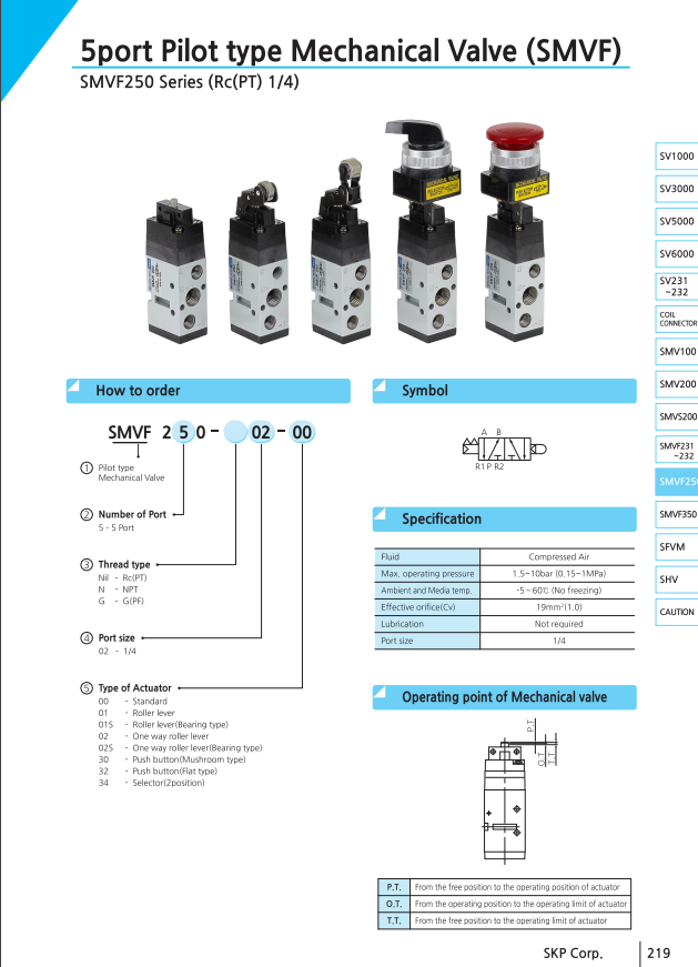 Công ty Thiết Bị Tự Động Hóa Cao Đạt xin gửi tới quý khách hàng sản phẩm van cơ khí SMVF 250 Hiệu SKP - Korea.