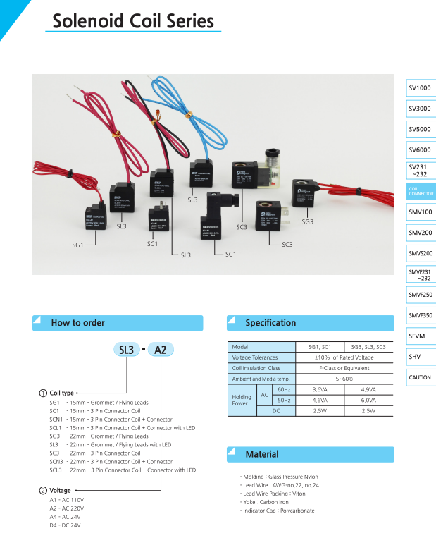 - Coil điện SG, SC, SL có các model:
