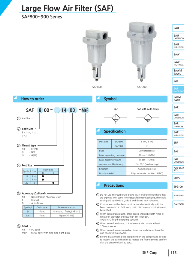 Bộ lọc khí SAU220H ~ SAU620H