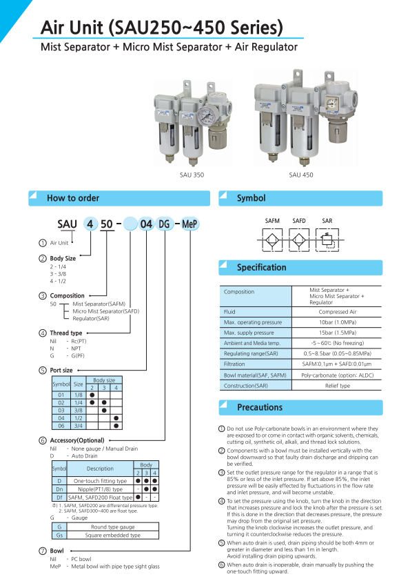 Bộ lọc ba SAU250 ~ SAU450