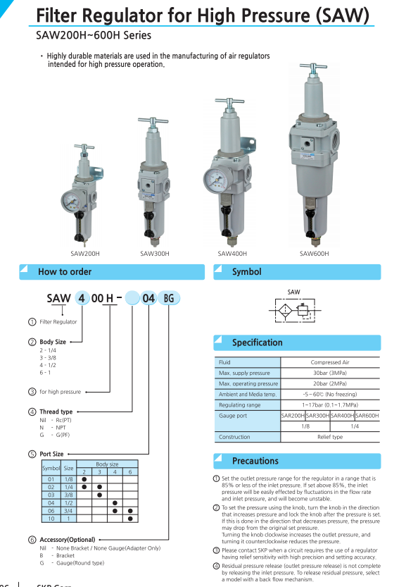 Bộ lọc áp cao SAW200H ~ SAW600H