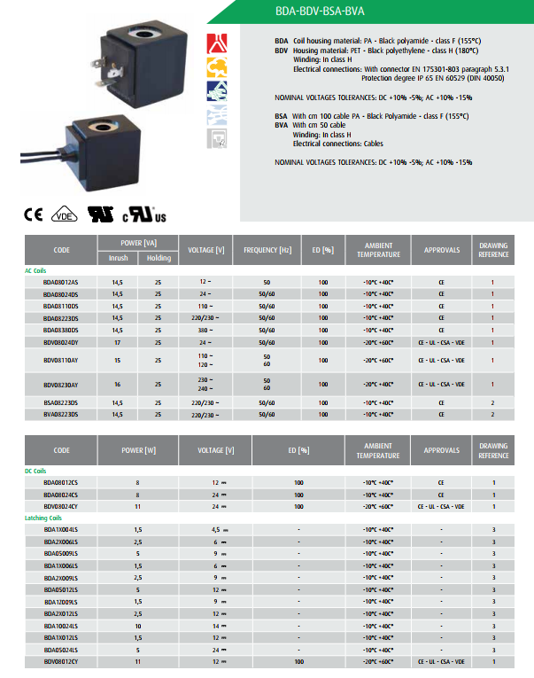 COIL ĐIỆN BDA, BDV, BSA, BVA CÓ CÁC MODEL: