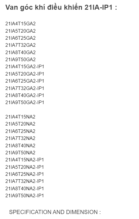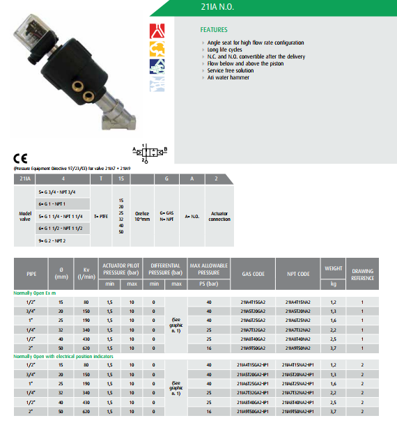 Van điện từ ODE : 21A3KV15, 21A3KV20, 21A3KV25, 21A3KV30, 21A3KV45, 21A2KV15, 21A2KV20, 21A2KV25, 21A2KV30, 21A2KV45, 21A2KV55