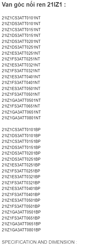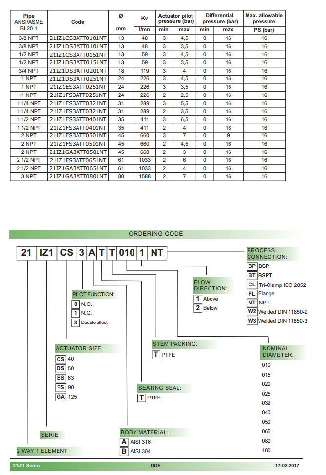 Van điện từ ODE : 21A3ZV15D, 21A3Z20D, 21A3ZV20G, 21A3ZV25D, 21A3ZV25G, 21A3ZV30D, 21A3ZV30G, 21A3ZV45D, 21A3ZV45G, 21A2ZV15D