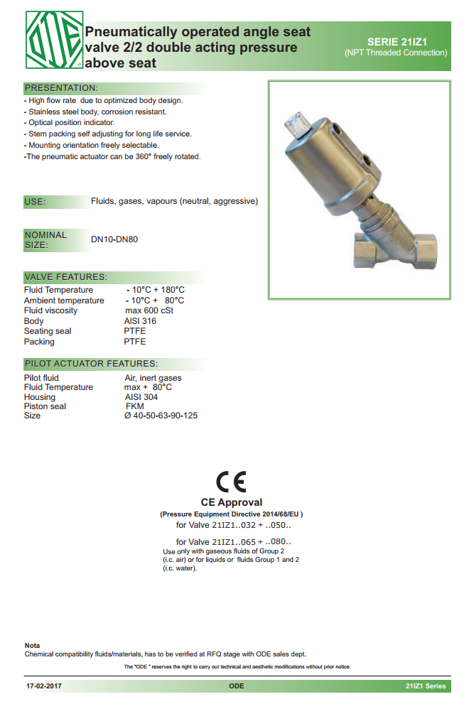 Van điện từ ODE : 21A3KV15, 21A3KV20, 21A3KV25, 21A3KV30, 21A3KV45, 21A2KV15, 21A2KV20, 21A2KV25, 21A2KV30, 21A2KV45, 21A2KV55