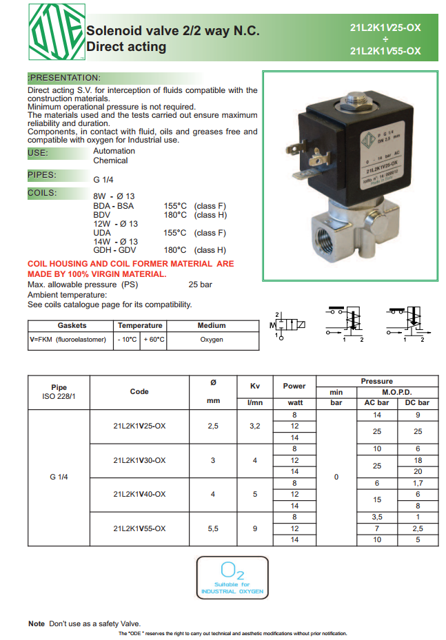 Van điện từ ODE: 21LK1V25-OX ~ 21L2K1V55-OX