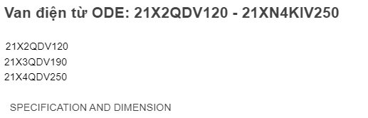 Van điện từ ODE: 21X2QDV120~21XN4KIV250