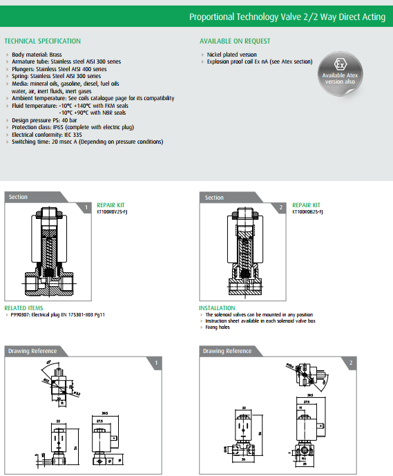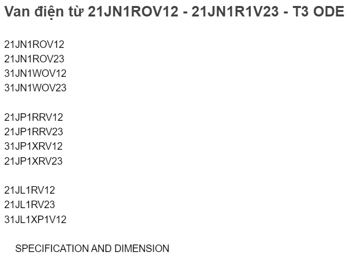 Van điện từ ODE : 21A3KV15, 21A3KV20, 21A3KV25, 21A3KV30, 21A3KV45, 21A2KV15, 21A2KV20, 21A2KV25, 21A2KV30, 21A2KV45, 21A2KV55